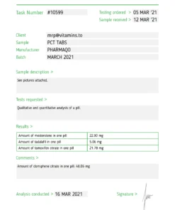 PCT Tabs by Pharmaqo Labs provide a multi-faceted approach to PCT, targeting various aspects of post-cycle recovery. By combining Tamoxifen Citrate, Clomifene, Tadalafil, and Mesterolone, PCT Tabs ensure a comprehensive and efficient post-cycle recovery.