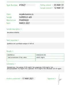 Supersus 400 by Pharmaqo Labs is a sophisticated blend of five testosterone esters, each chosen for their specific release rates, ensuring a balanced and sustained testosterone delivery. This product is ideal for bodybuilders and fitness enthusiasts aiming for muscle growth and enhanced performance. The esters include: